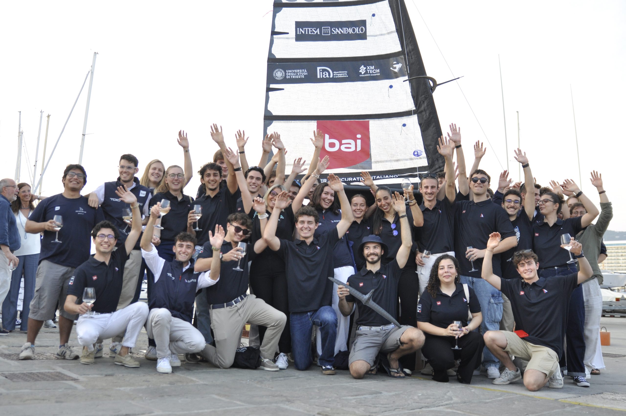 A new high-performance sailing vessel developed by the Audace Sailing Team of the University of Trieste (UniTS) was launched this week at the Yacht Club Adriaco. The vessel, named BAI – Flax Bandit, will make its competitive debut on June 16 at the SuMoth Challenge in Malcesine, an international regatta for student-designed foiling moths.