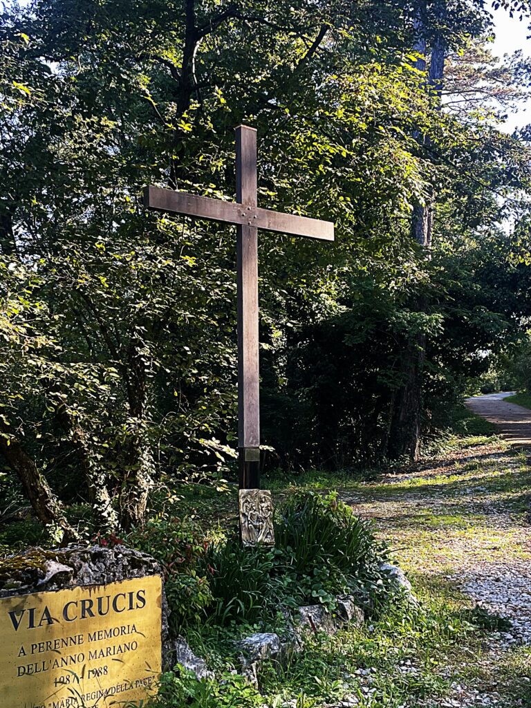 If its form divides opinion, its location unites admiration. Standing at 330 meters above sea level, the sanctuary’s piazzale opens onto one of the most commanding views in the region. On clear winter days, the Adriatic sparkles all the way to Istria, while the rooftops of Trieste sprawl at your feet. The panorama is so striking that even those unmoved by concrete geometry often linger to take it in. Reaching the sanctuary is easy enough: city bus number 42 runs from Piazza Oberdan up the winding roads of the Carso, carrying pilgrims and casual visitors alike to the top, where the sudden vastness of the landscape makes the climb worthwhile. Beside the sanctuary, immediately after the entrance gate, begins a striking Via Crucis that winds through a lush forest filled with Austro-Hungarian trenches from the Great War. Following this path, you will reach the start of the popular and panoramic Napoleonica trail, the most beloved route among the people of Trieste.