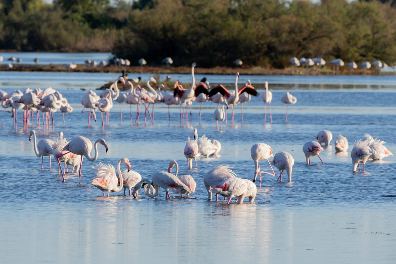 Between late winter and early spring, more than a thousand flamingos gather in the wetlands of the Valle Cavanata Natural Reserve, one of the largest wintering sites for the birds in the northern Adriatic. The flocks — often numbering between 1,000 and 1,500 — typically remain until April, feeding and resting in the shallow waters of the protected lagoon.
